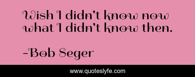 I wish i didnt know now what i didnt know then. Im not sayin that you. Bob Seger - I Wish I Didnt Know Now What I Didnt Know Then Shirt Hoodie. In retrospect five short years ago seems almost like Mayberry.